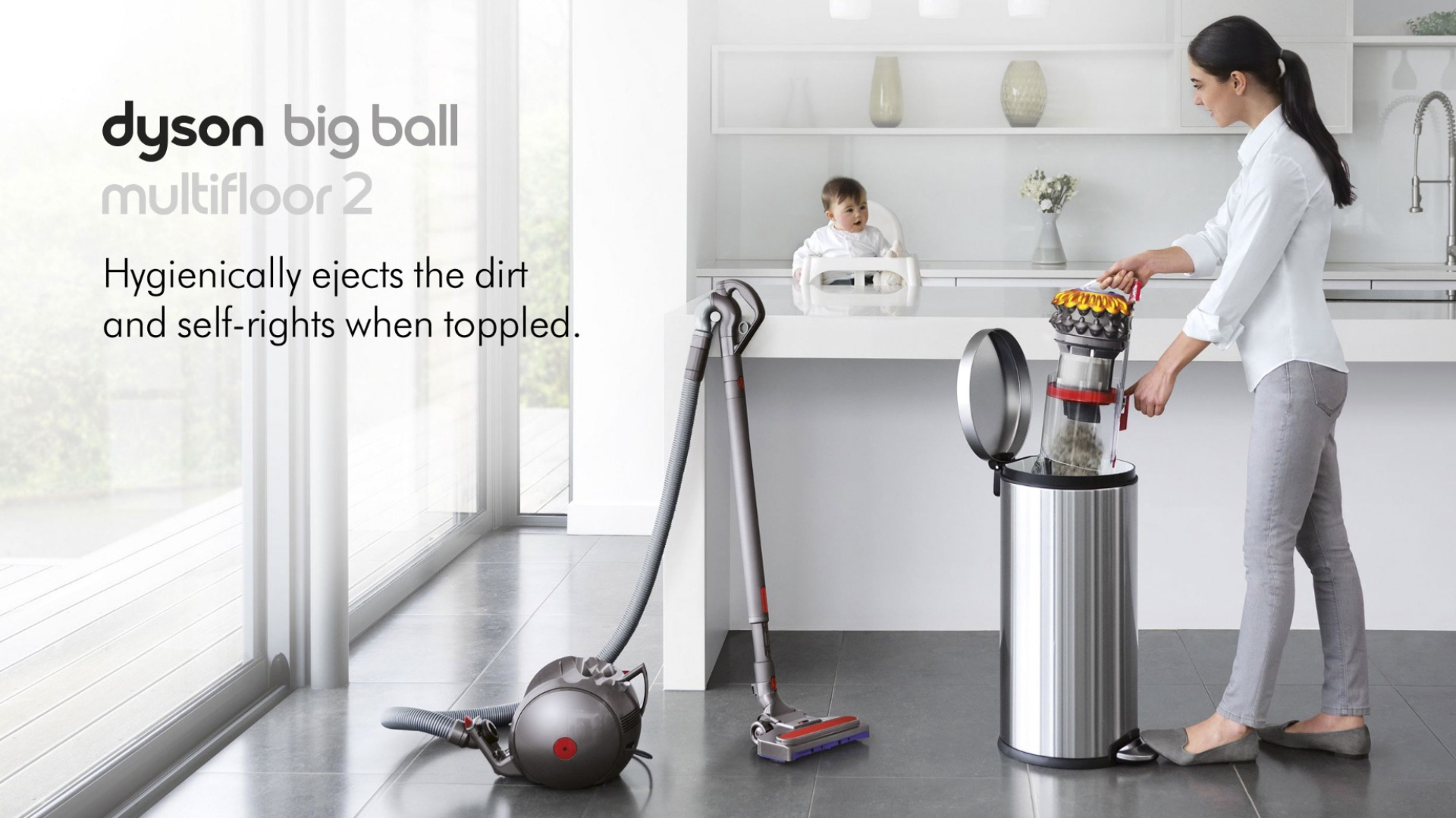 | Features | Picks itself up when knocked over: Only Dyson Big Ball™ cylinder vacuums pick themselves upHygienic bin emptying: Drives out trapped dirt, so there's no need to touch it2 Tier Radial™ cyclones: two tiers of cyclones generate high centrifugal forces to capture microscopic dust and allergensNew self-adjusting Pneumatic cleaner head: automatically self-adjusts to seal in suction across all floors - no need to change cleaner heads |