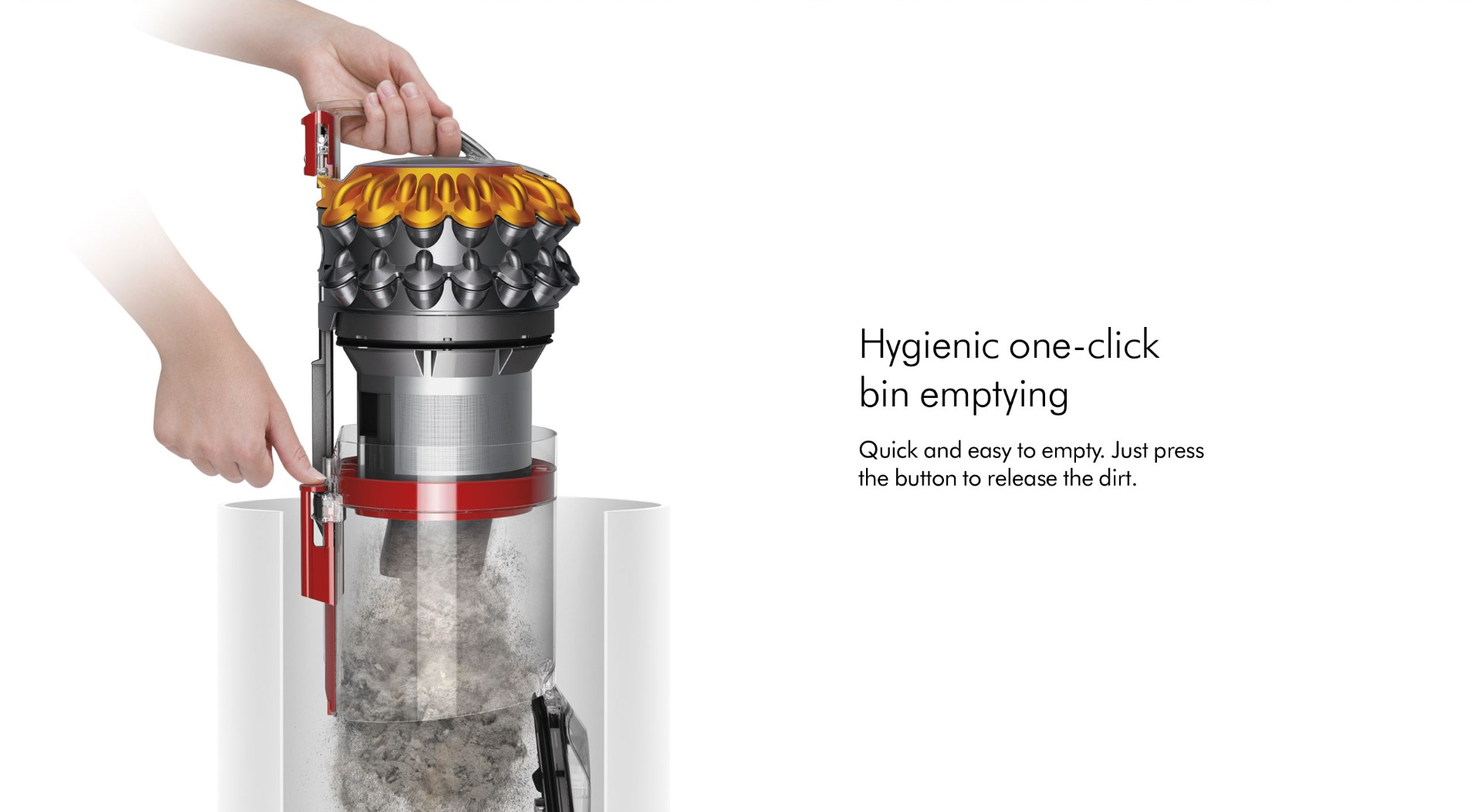A hygienic bin-emptying system can be found on this model with the press of a single button, dust and dirt are released from the appliance, so theres no need to touch it. Whats more, with noise reduction thats 25% quieter, Dyson has created a powerful cleaner that wont disrupt your peace and quiet.