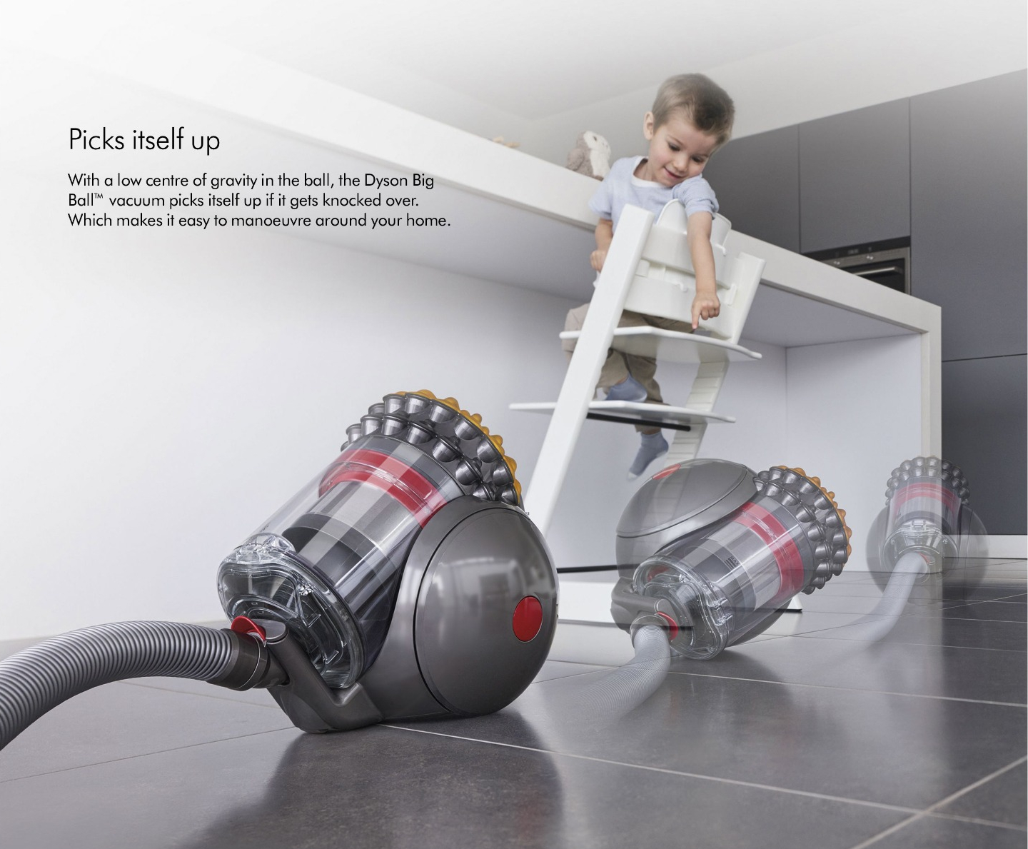 With it's low centre of gravity in the ball, it almost instantly self-rights allowing you to carry on vacuuming with no interruption.