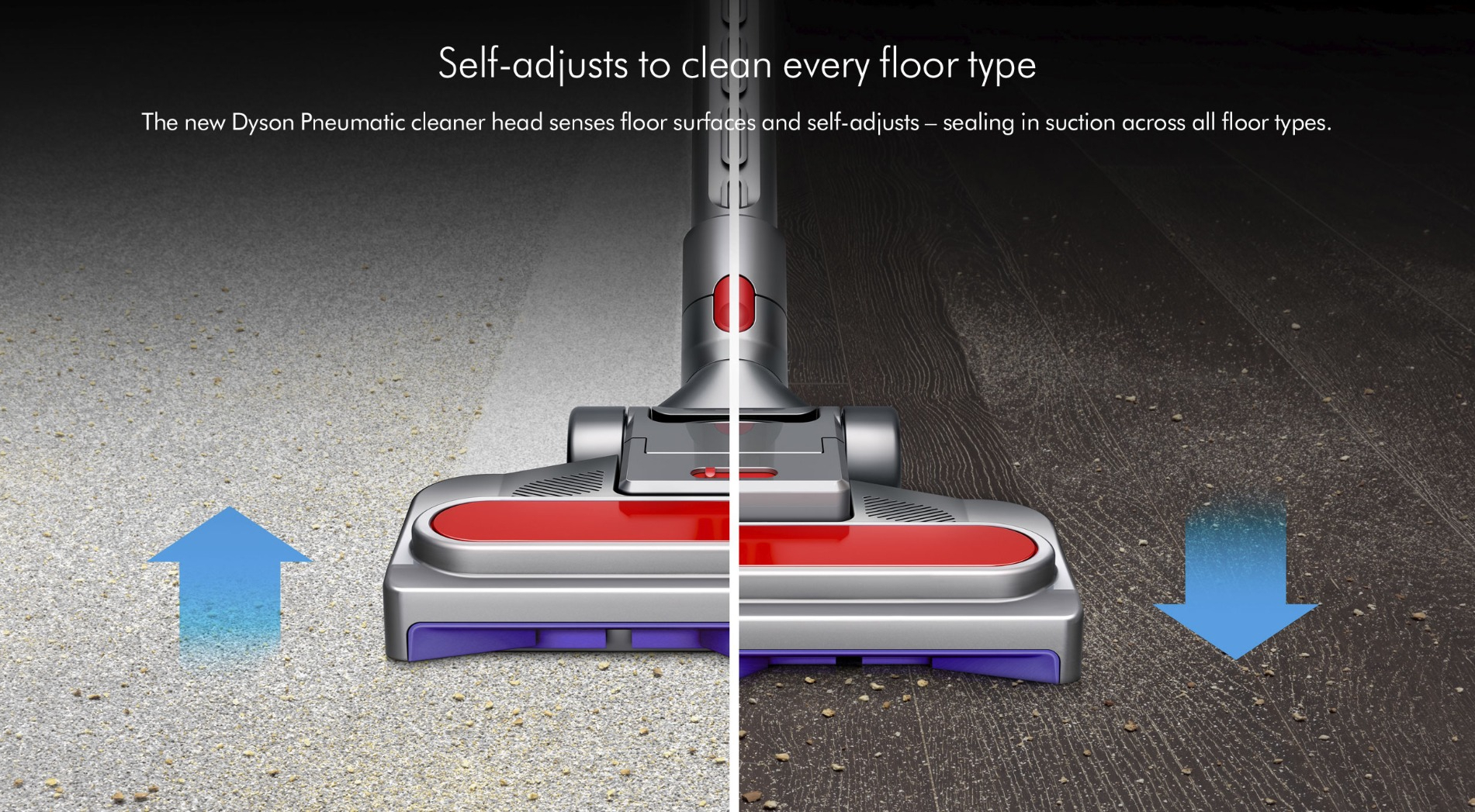 With Dyson's pneumatic cleaner surface recognition sensor, it allows the head to raise and lower depending on the floor type keeping suction to it's maximum, combined with the force generated by their Radial Root Cyclone technology, it can even capture microscopic dust and allergens.